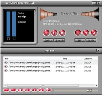 Auf der übersichtlichen Oberfläche von Free Sound Recorder findet man sich schnell zurecht. Auf Wunsch startet das Programm die Aufnahmen mit Hilfe von Tastenkürzeln, zu einem festgelegten Zeitpunkt oder aber täglich an bestimmten Wochentagen.